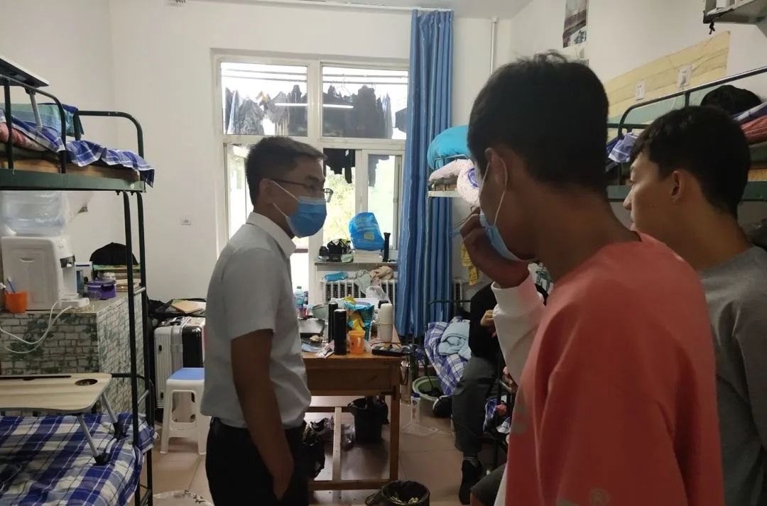 生命科学与技术学院2020-2021学年秋学期第一轮学生公寓检查工作拉开序幕,为了发扬爱国卫生运动的优良传统,提升学生公寓生活环境,排查安全隐患,按照学院统一部署,8月30日下午,学院团总支袁永峰老师带领学生干部深入男生公寓,检查公寓卫生,强调用电、防火安全并耐心地了解学生返校后学习、生活情况。
