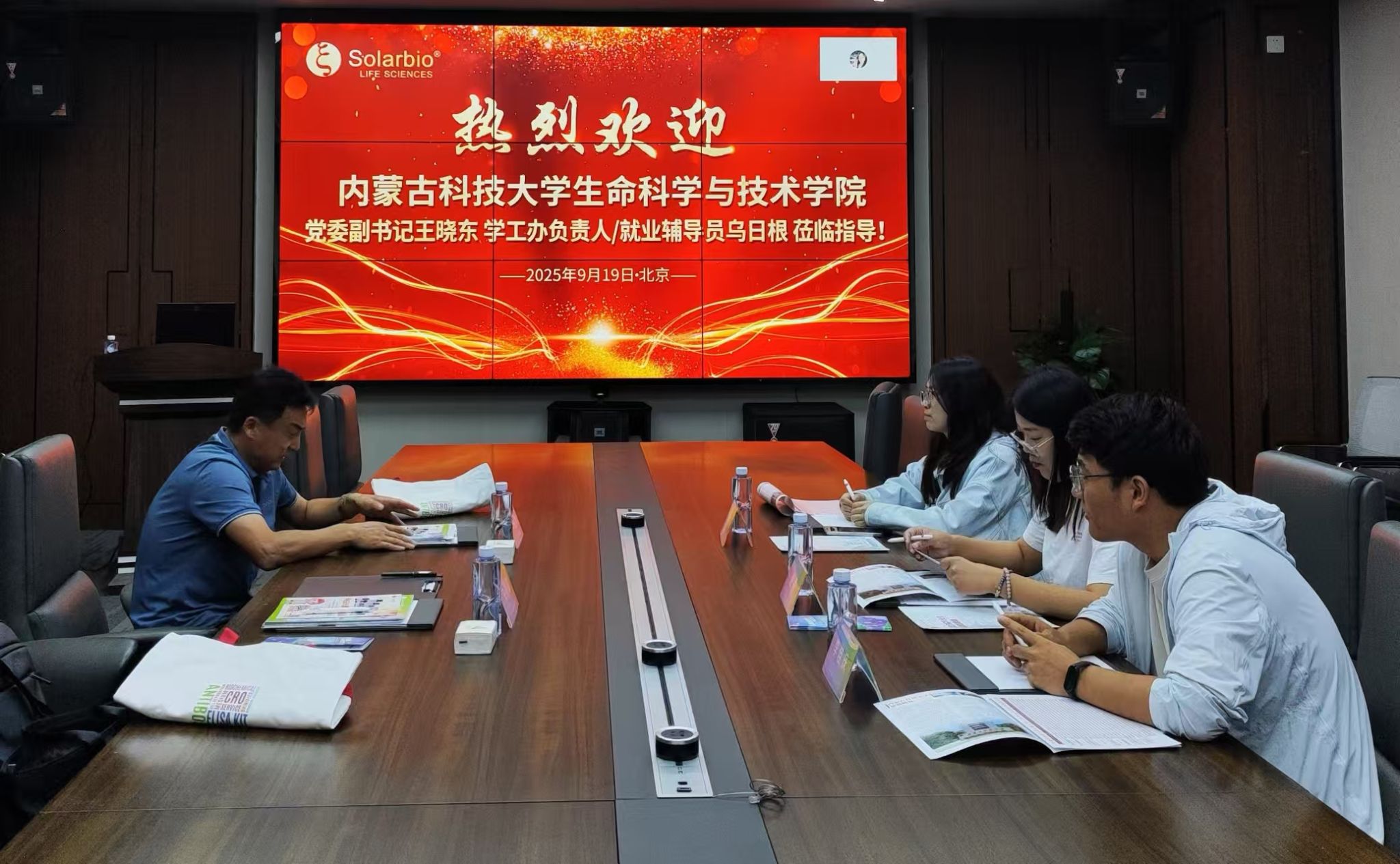 随后,王晓东一行走访了北京索莱宝科技有限公司。公司市场部经理、学院优秀校友2020届生物学专业郭艳飞和人力资源经理赵靖等共同接待,详细介绍了公司发展历程、业务范围以及对应届毕业生的具体岗位需求。
