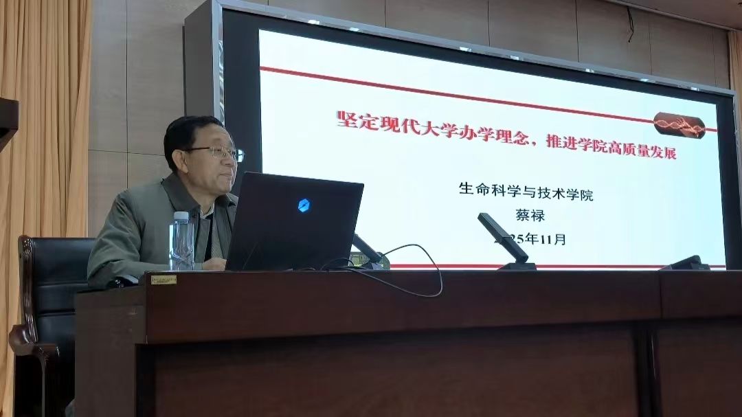 为深入贯彻落实学校“知校·爱校·荣校”主题教育实践活动,让师生进一步了解学院发展历程、坚定发展信念、凝聚奋进力量,生命科学与技术学院于2025年11月6日在图书馆B201报告厅举办“解码来时路,编写新篇章——我们的生科故事”院史专题宣讲会。我院资深教授、学院发展的重要亲历者与见证者蔡禄教授担任主讲嘉宾,全体教职工及部分学生代表参加宣讲会。