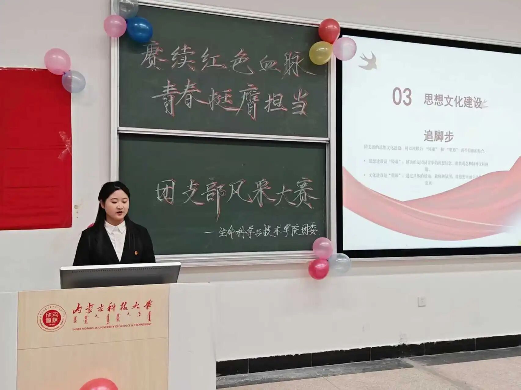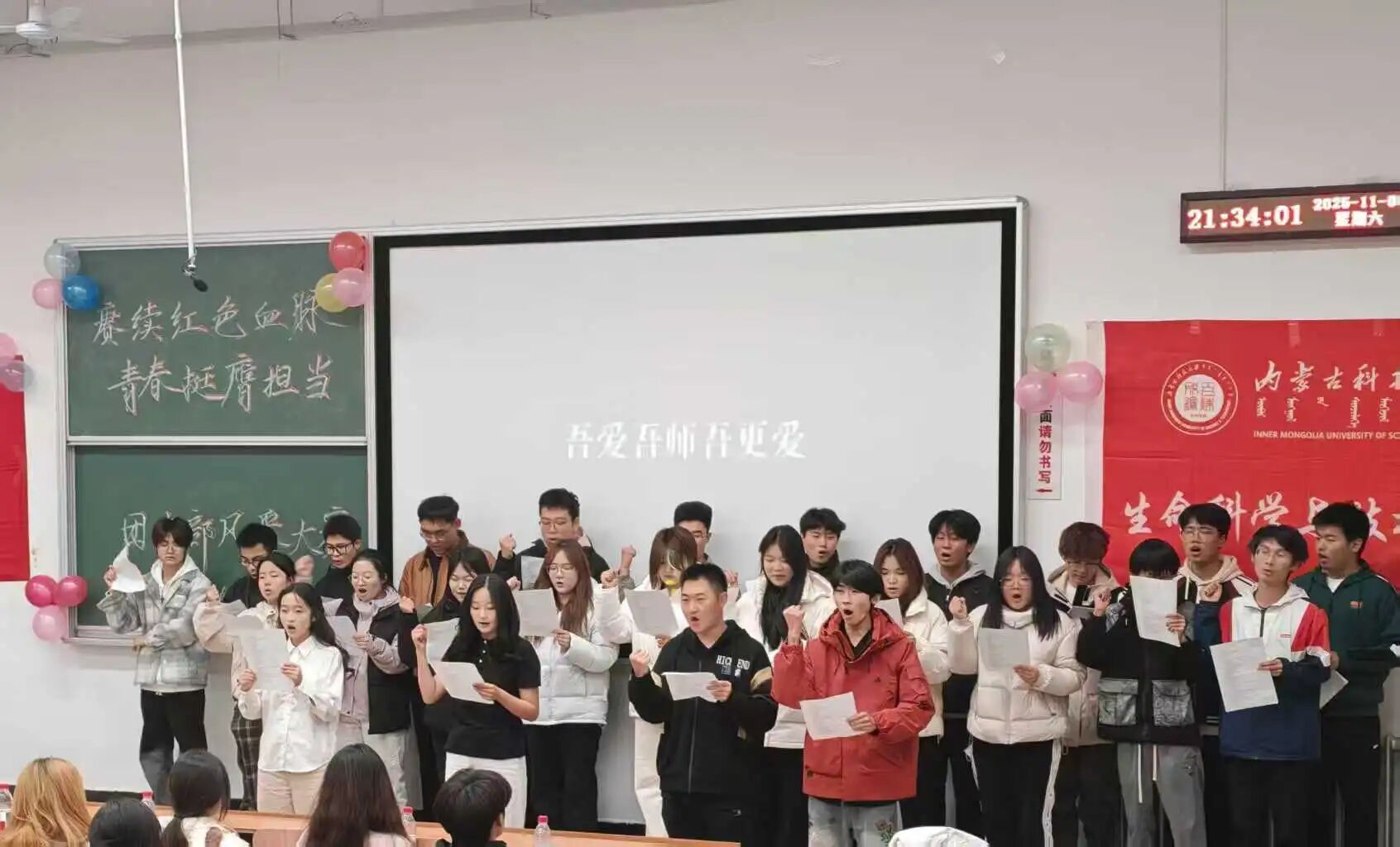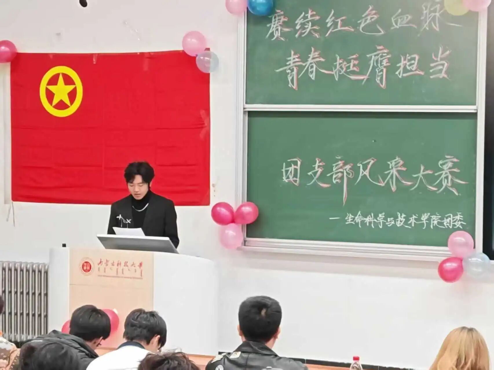 青春逢盛世,奋斗正当时。11月8日,生命科学与技术学院“赓续红色血脉,青春挺膺担当”团支部风采大赛成功举办,团委负责人贾镇宁、学工办负责人乌日根及各学生组织主席担任本次活动评委。本次活动不仅丰富了校园文化生活,更以艺术为媒介、以创意为桥梁,展现了青年学子对红色精神的创造性传承与创新性表达。各团支部紧扣主题、精心编排,以歌抒怀、以舞励志、以诵明志,生动诠释了新时代青年的使命担当,彰显出踔厉奋发、昂扬向上的精神风貌。