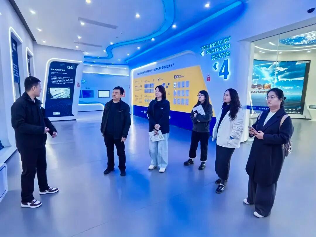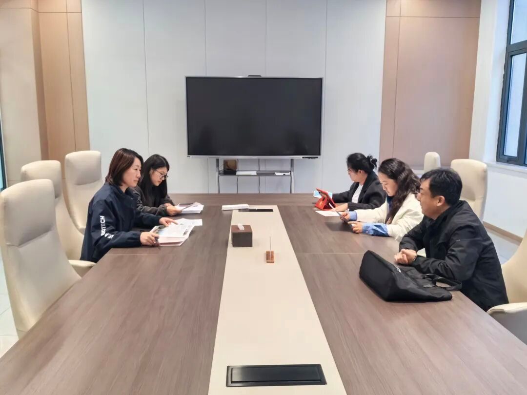 在青岛海大生物股份有限公司,人力资源部魏琦部长和张艳丽经理热情接待了学院一行。在魏部长和张经理的陪同下详细了解了企业的战略发展方向、核心业务布局以及对高校毕业生的具体能力要求。在随后的座谈中,双方就建立校企联系、人才需求以及当前毕业生职业期待等进行了深入的交流。王晓东表示,通过此次访企交流,学院能够更精准地把握市场需求,有思路有方法的转变学生就业认知,优化人才培养方案、帮助学生合理规划职业生涯,学有所用。