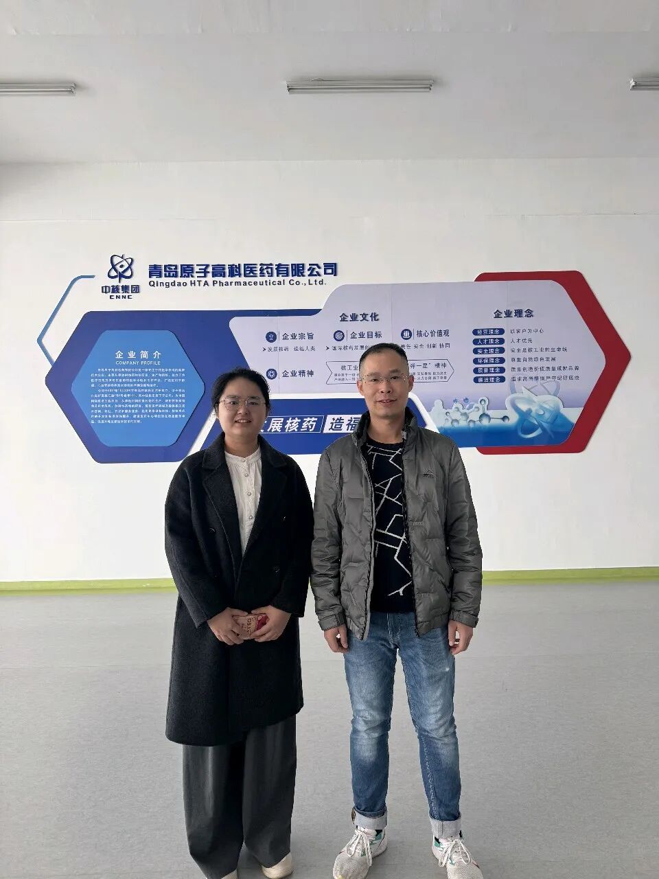 随后,团队到访青岛原子高科医药有限公司。公司总经理高静向学院重点介绍了作为央企,公司在生物医药与健康领域的发展规划,并详细阐述了企业所需人才的核心素质,不仅关注专业技能的扎实程度,更看重员工责任担当与持续学习能力。学院还与在该公司工作的2007级食品科学与工程专业校友常纪刚进行交流。校友回顾了在校求学经历,表达了对母校和恩师培养的深切感激,并分享了自身在职业成长中的经验。随后,双方围绕人才需求与大学生如何职业过度等话题展开座谈。