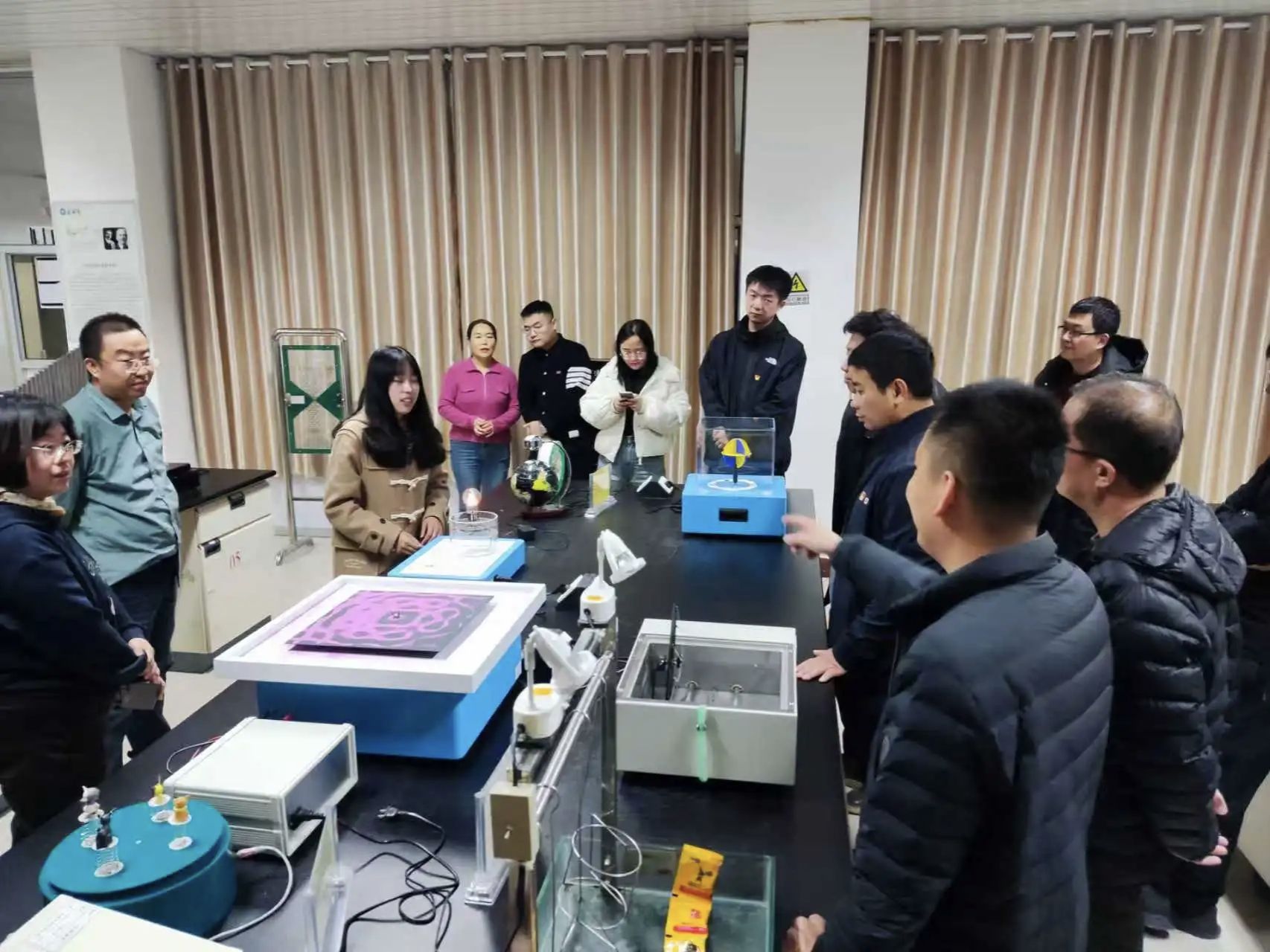 活动伊始,支部党员代表与各校教师共同参观了理学院物理科普实验室。通过辉光球、电磁感应演示试验仪、光纤通信、磁悬浮灯泡等70余个经典实验场景的沉浸式体验,党员教师亲身体验了物理与电子科学系在科普转化方面的成果,为进一步推动“党建+科普”融合提供了新思路。