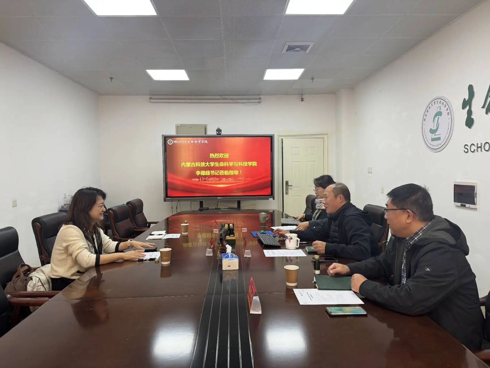 在南京师范大学生命科学学院,该学院党委书记许小东围绕学院办学历史、人才培养、师资队伍、教学科研、社会服务等内容进行了系统深入的介绍,全面展示了学院的建设成果与发展特色。李德超对南京师范大学生命科学学院近年来取得的办学优异成果表示祝贺,介绍了我院的基本情况,着重介绍了学院学科建设的现状,学院正主动依托学校政策,积极引进高层次人才,欢迎南京师范大学的优秀博士毕业生及高层次人才到内蒙古科技大学工作交流。南京师范大学生命科学学院是国家理科基础科学研究和教学人才培养基地,学院设有生物学一级学科博士、硕士学位点和生态学一级学科博士、硕士学位点,生物学和生态学博士后流动站,动物学二级学科为国家重点学科,“植物学和动物学”、“环境科学/生态学”进入全球ESI前1%。此次交流,我院学习到了南京师范大学生命科学学院在学科建设上的宝贵经验,双方表达了未来在党建联动、人才培养、师资队伍建设、科研合作等方面开展合作和进一步深度交流的意愿。