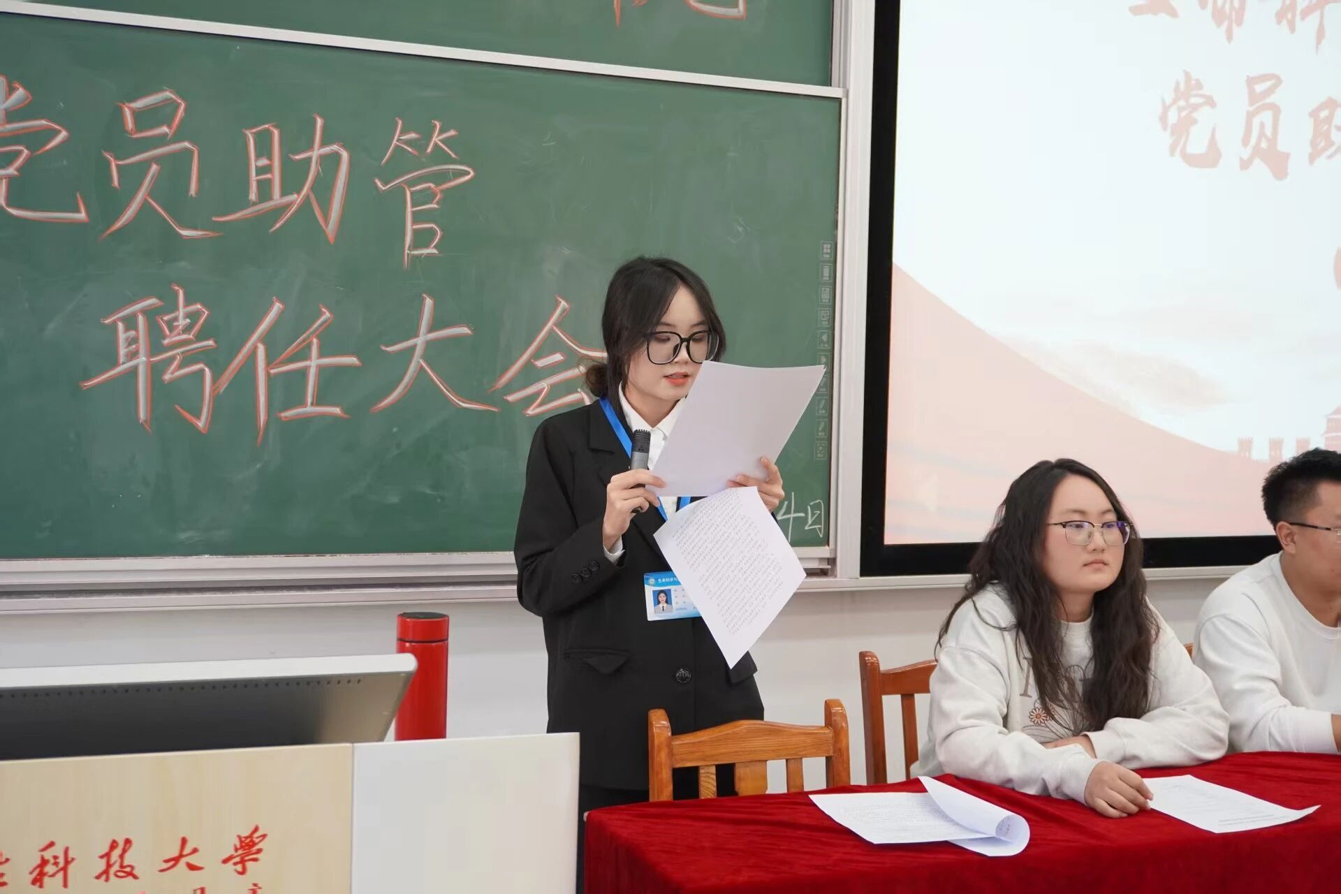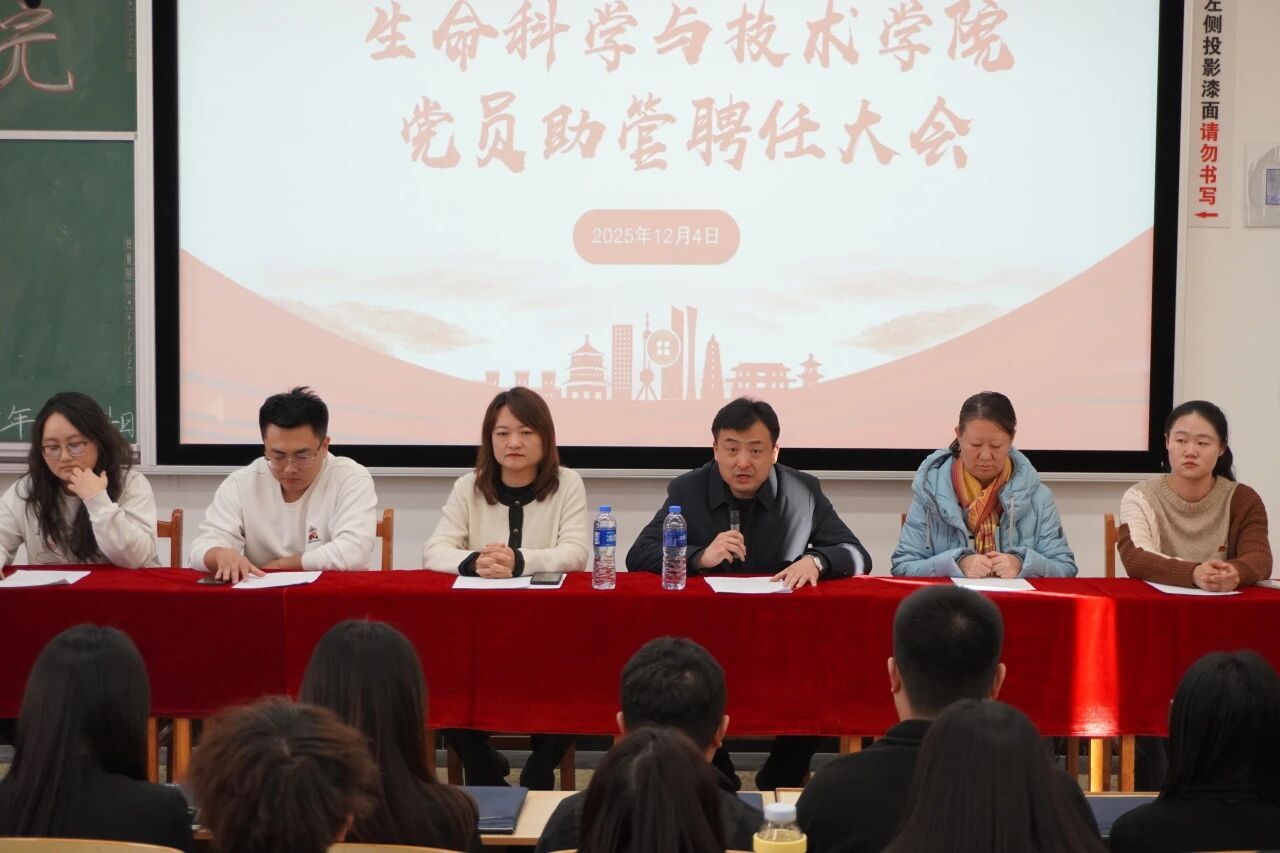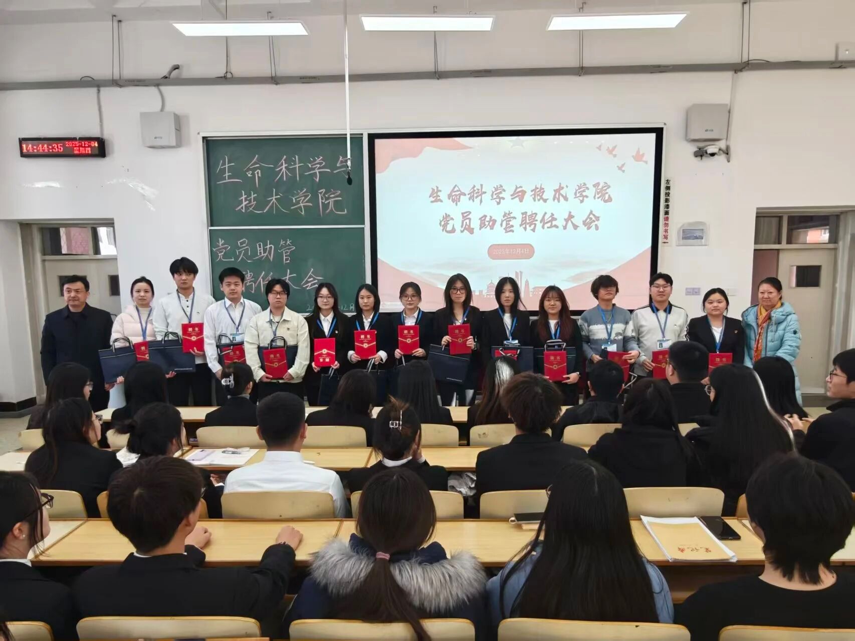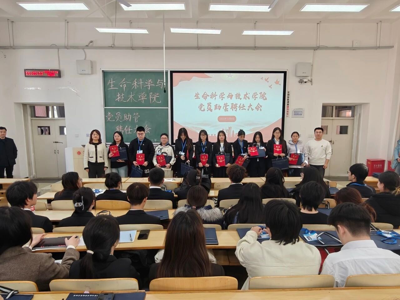 为进一步创新学生教育管理模式,强化党建引领,发挥学生党员先锋模范带头作用,生命科学与技术学院于12月4日下午在文馨书院B211成功举办“先锋凝聚力量,朋辈引领成长”党员助管聘任大会。学院党委书记李德超、党委副书记兼副院长王晓东、全体辅导员及新受聘的全体班级党员助管参加大会,大会由学院学生党员代表——学生第二党支部李宋杰同志主持。