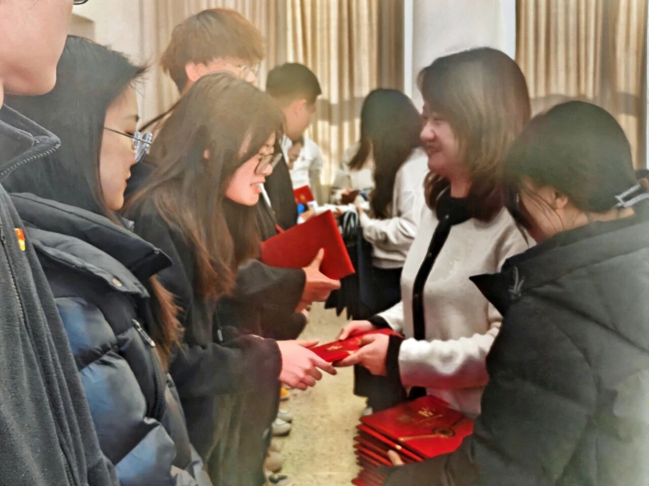 聘任仪式在庄严的氛围中拉开序幕。学院党委书记李德超宣读学院关于聘任党员助管的决议。随后,学院学工办负责人乌日根老师宣读了受聘党员助管名单。在热烈的掌声中,学院领导和年级辅导员依次为2025级、2024级、2023级及2022级的党员助管颁发了承载着信任与责任的聘书并佩戴工作证,领导和老师与同志们合影留念。