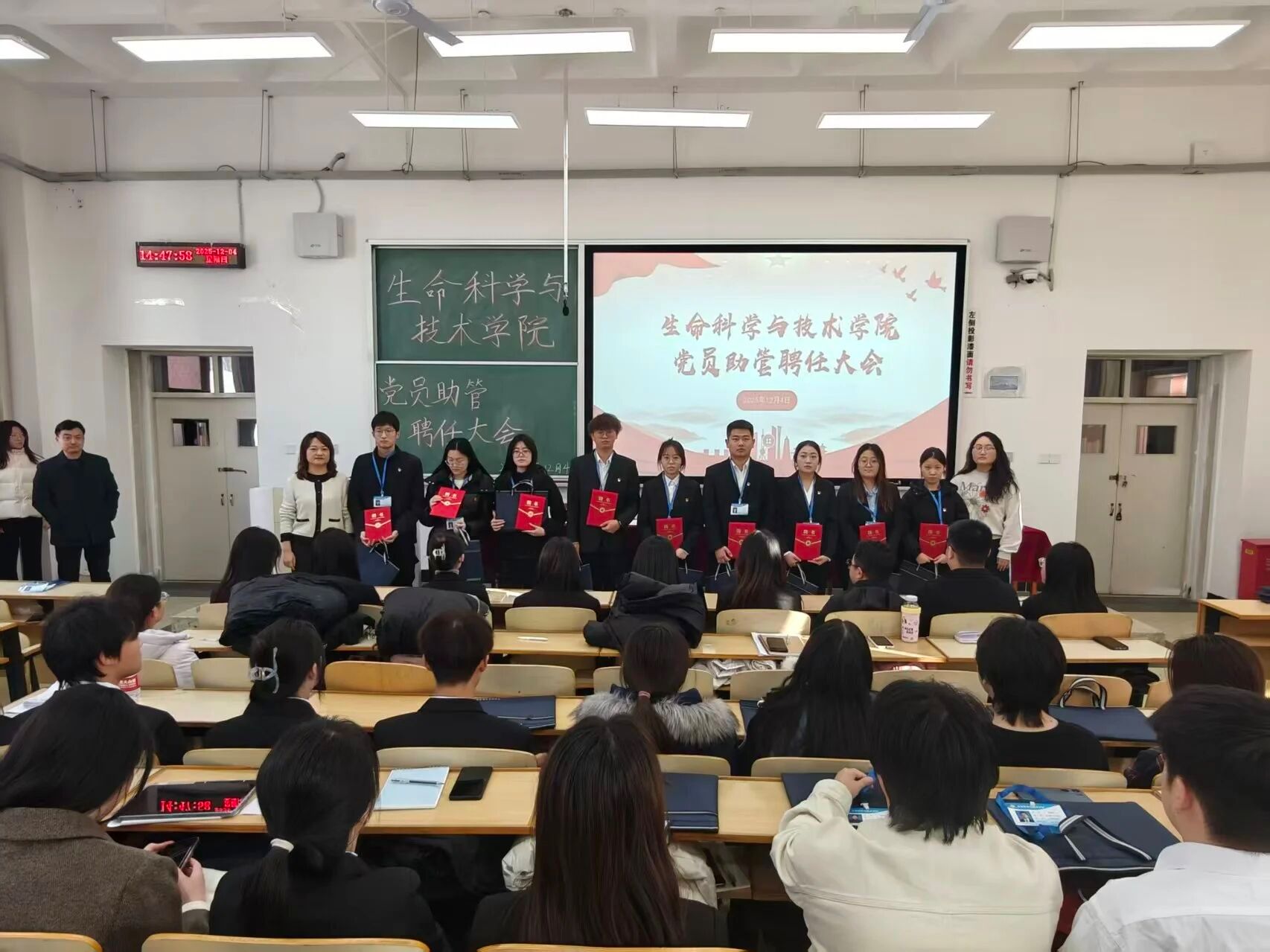 此次聘任大会的顺利举行,标志着生命科学与技术学院“党建带班建”长效工作机制的进一步深化。一批政治素质硬、综合能力强的学生党员将以朋辈引领者的身份,深入班级,走入宿舍、进入课堂弘扬思想信仰、提供贴心帮扶,为营造积极向上、互助友爱的校园文化氛围,培育“比学赶超帮”的优良学风,提供“晓学生事、解学生忧”的鼓励陪伴,助力学生全面成长为德才兼备,勇于担当的社会主义合格建设者和可靠接班人贡献青春力量。