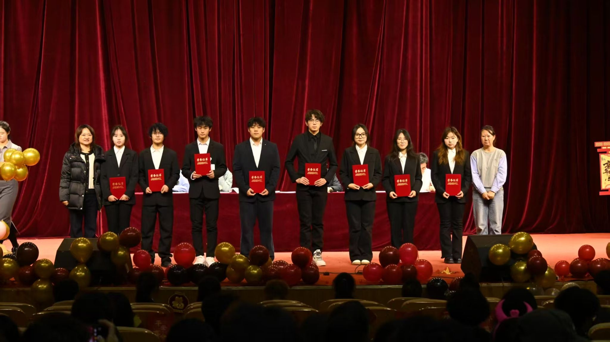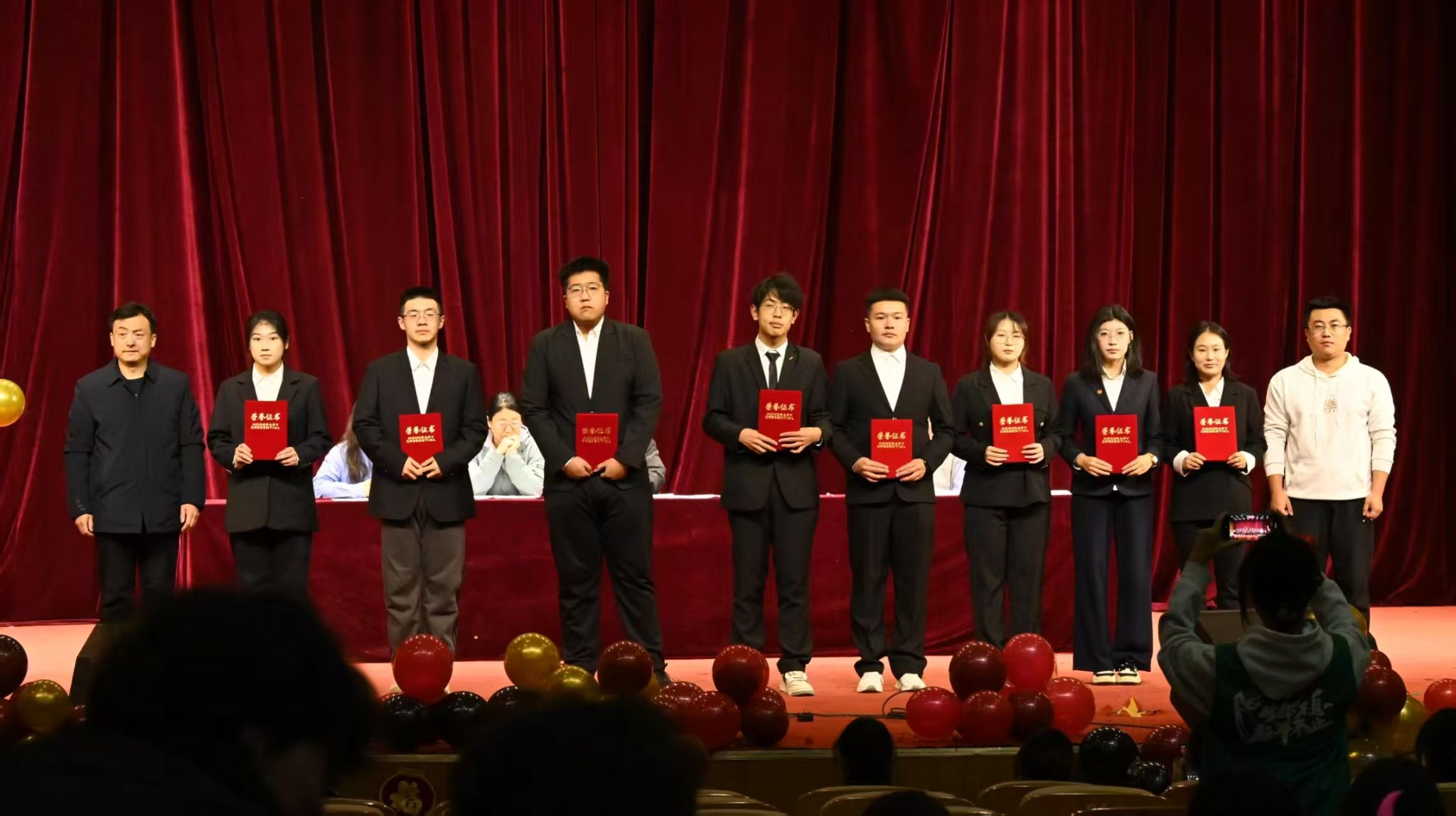 李德超书记宣读了学院表彰决定。随后,大会依次表彰了“优秀学生干部”、“科创先进个人”、“优秀班干部” 及“优秀通讯员”、“标杆宿舍”“优秀宿舍”等多项荣誉。获奖学生代表依次登台,从院领导和老师手中接过承载着肯定与期望的荣誉证书。阵阵掌声,既是对先进榜样由衷的祝贺,也是对全院学子一年来砥砺前行、辛勤付出的集体致敬。