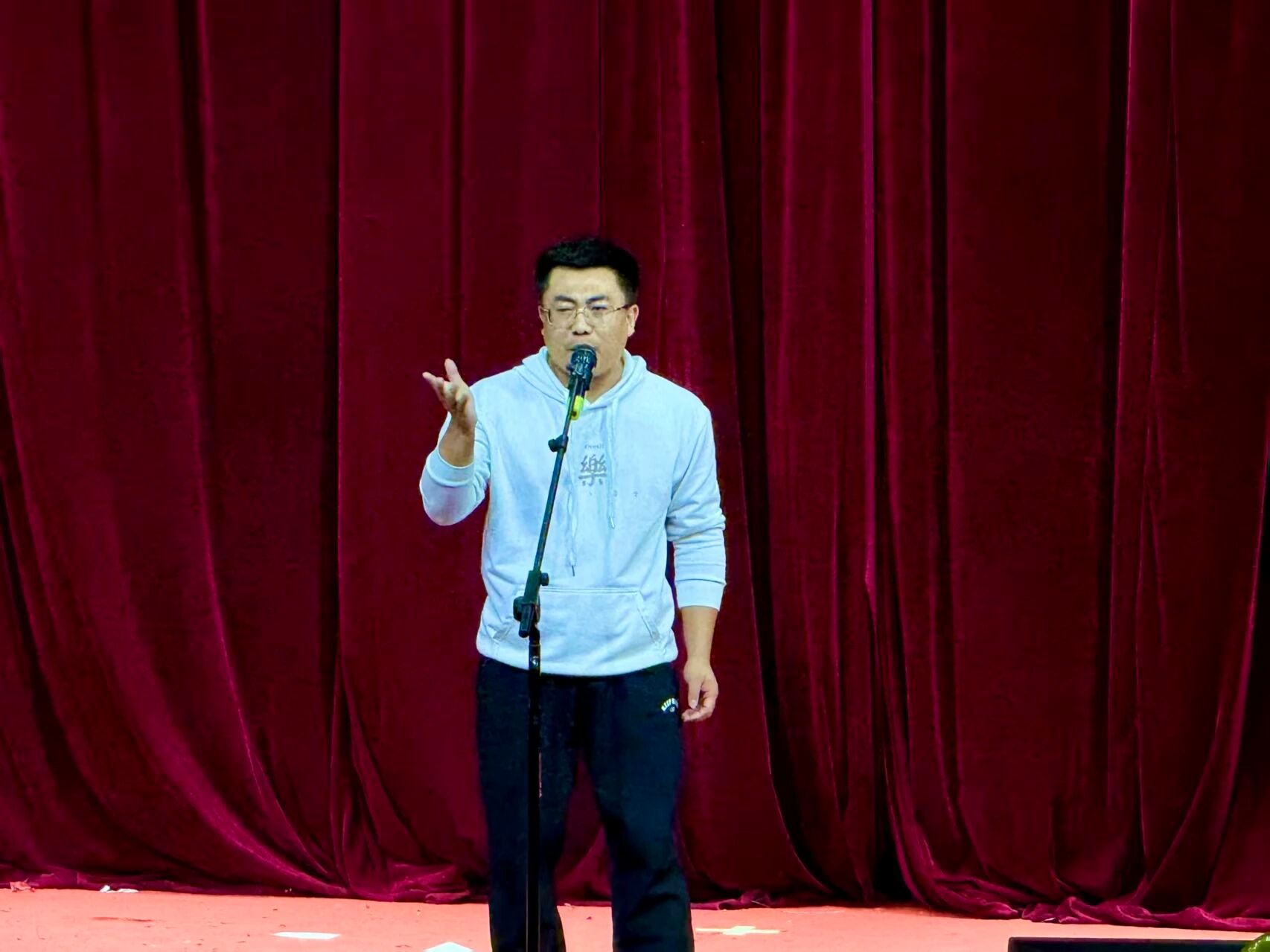 整场晚会高潮迭起,掌声不断,充分展现了学院深厚的文化底蕴和积极向上的育人氛围。师生同台,快乐翻盘。乌日根老师的《八扇屏之“莽撞人”》让我们在铿锵顿挫、一气呵成的经典台词中,感受那份锐不可当的气势!借古喻今,既祝大家新年快乐,更愿2026考研的每一位同学,都能如这位“莽撞人”一般:胸中有丘壑,立马振山河!以笔为矛,以智为甲,勇往“直”前,一战成“硕”!