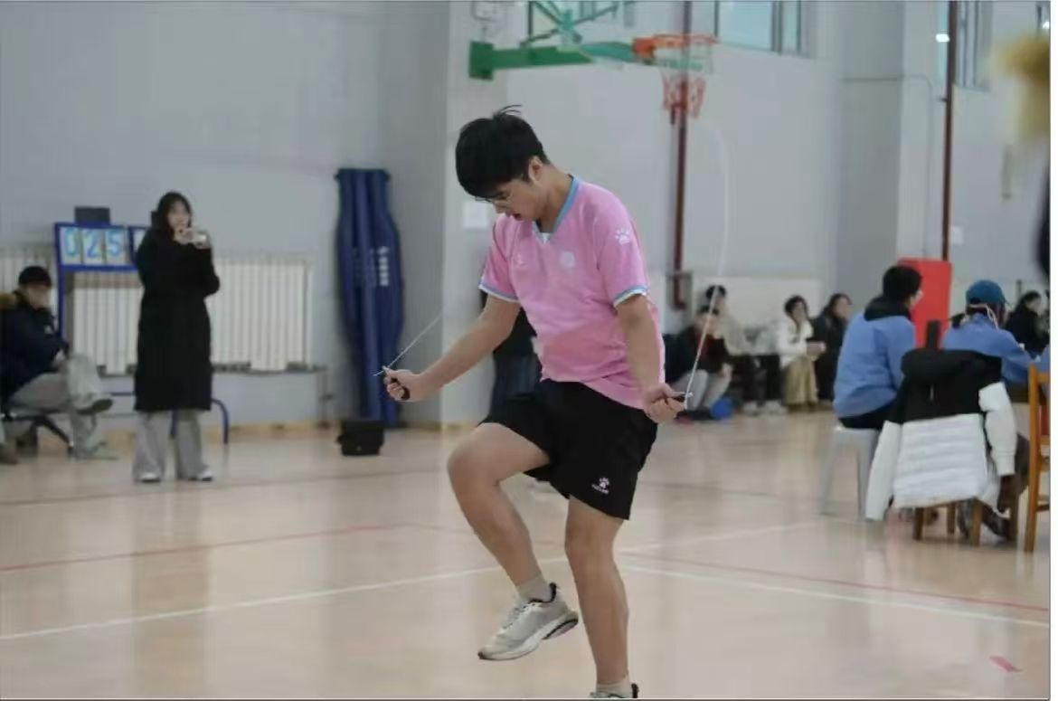 个人赛场,速度与激情碰撞。在竞争激烈的单项比赛中,我院选手表现抢眼:生物2025—2班边宇博同学在30秒单摇项目中一马当先,以绝对优势荣获第一名;食品2024—2班李开清同学于1分钟单摇赛场沉着应战,稳定发挥,取得第四名;生信2025—1班陈家琪在30秒双摇项目中突破自我,跻身第八名。每一次迅速的绳影摆动,每一次轻盈的腾空跃起,都是他们平日刻苦训练的生动写照,更是拼搏精神的有力彰显。