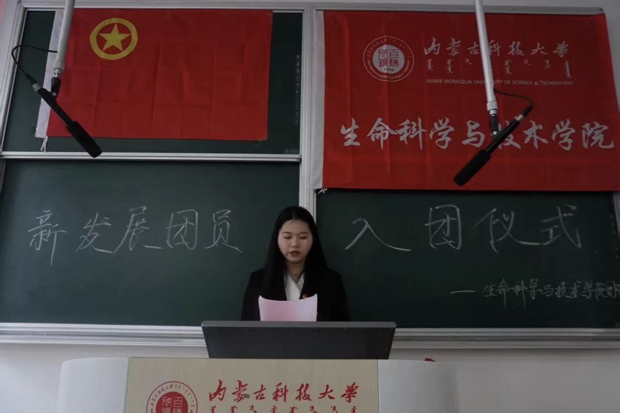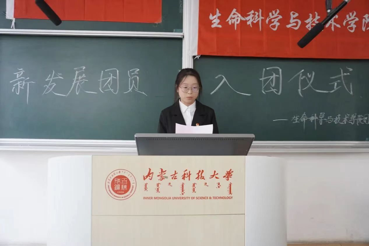 为深入推进共青团思想引领工作,筑牢青年团员思想根基,2025年12月18日,内蒙古科技大学生命科学与技术学院隆重举行新发展团员入团仪式。学院团委相关负责人、团学干部代表及全体新发展团员共同参加了这一庄严仪式,见证青年学子加入共青团的光荣时刻。