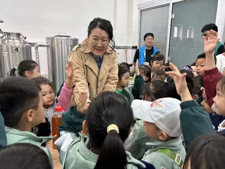 在工程训练中心A219啤酒实验室,孩子们瞬间化身充满好奇心的“小小科学家”。王蕾老师和卢庆华老师化身科学魔法师,用生动有趣的语言,向孩子们揭开啤酒酿造的神秘面纱。麦芽、水和酵母,这些看似普通的原料,在老师们的讲解下,仿佛拥有了神奇的魔力,在发酵过程中“变身”为香醇的啤酒。小朋友们不仅认真聆听讲解,还纷纷伸出小手,触摸大麦种子,近距离观察发酵原料和设备,感受着科学如何融入日常生活,现场不时响起惊叹声与欢笑声。