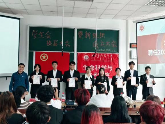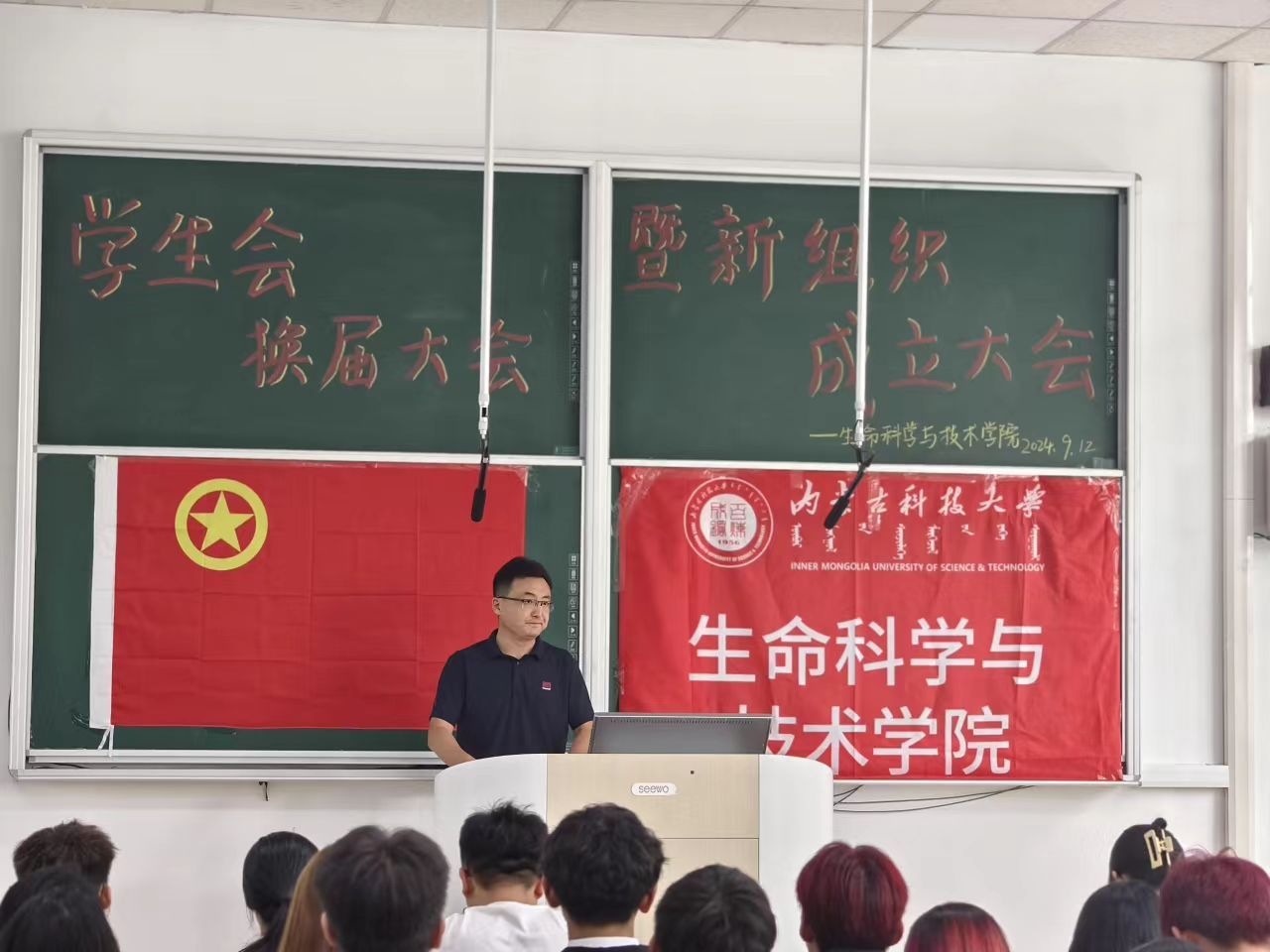 2024年9月12日下午,生命科学与技术学院在春晖学堂F210举行2024届学生会换届暨新组织成立大会。出席本次大会的有生命科学与技术学院党委副书记兼副院长王晓东,学院学工办负责人张祎璐老师,学院团总支贾镇宁老师,学工办乌日根老师、陈明真老师、高永强老师。参加本次大会的还有2023届主席团成员以及2024届团学组织主席、各部门部长。